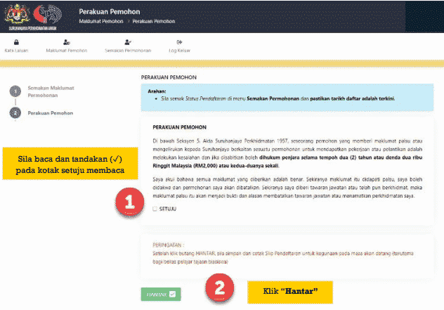 4. Sekiranya tidak klik butang “Hantar”, permohonan tidak akan diproses.